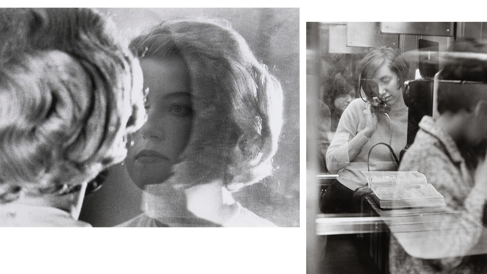 Right: Danny Lyon (American, born 1942), Woman in a phone booth, 1967
