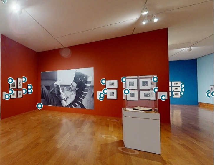 Virtual Tours are a way to explore exhibitions at the Des Moines Art Center online. Once you have selected a tour, use your cursor to move around the gallery or tap a circle to “stand” in front of a piece of art. Each artwork is labeled with title and artist.